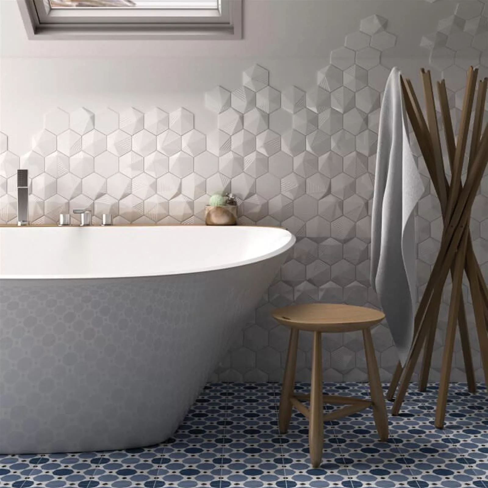 Muster Wandfliesen Rockford 3D Hexagon 12,4x10,7cm Weiß Matt
