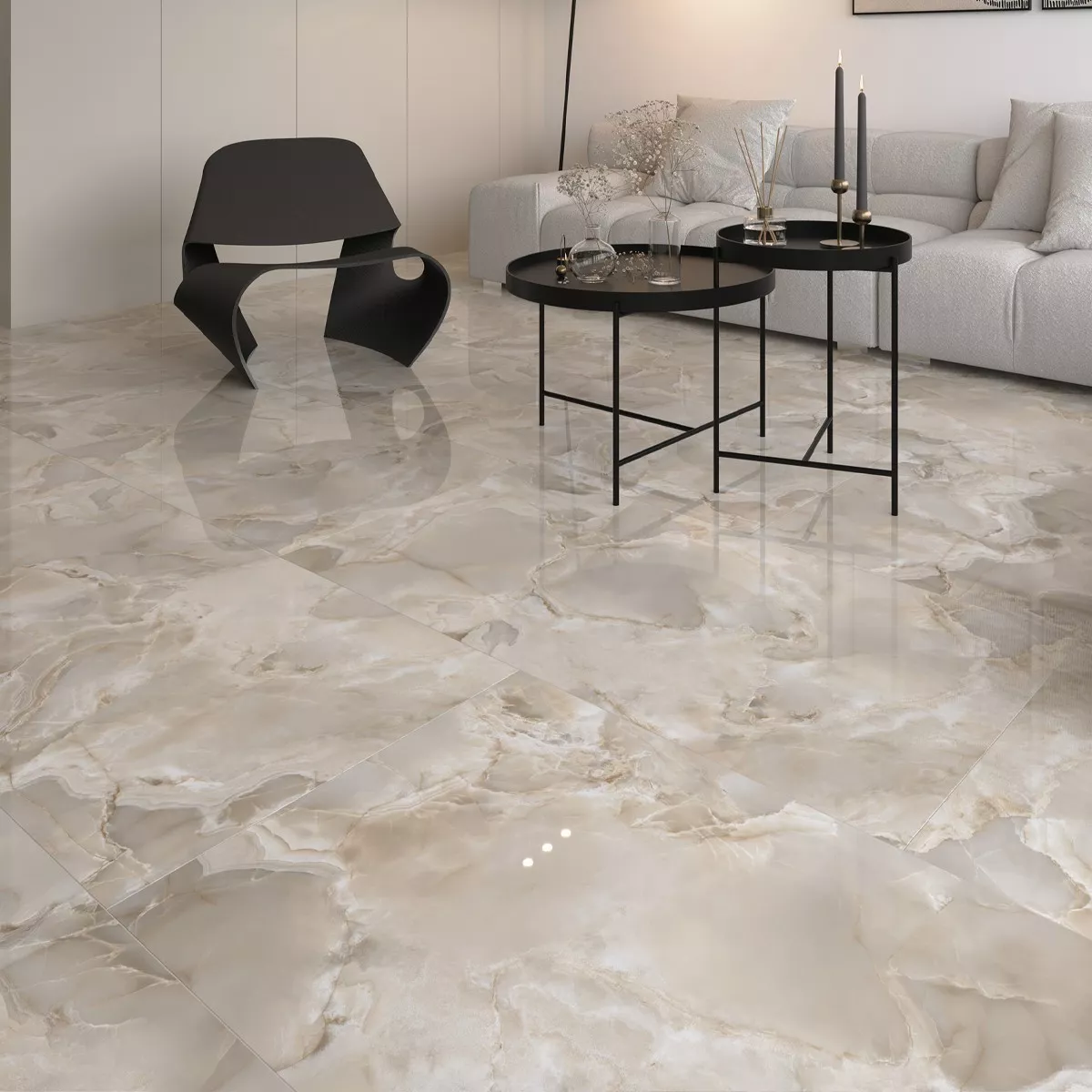Die Wasserfestigkeit und die Eignung für Fußbodenheizungen zeichnen die Feinsteinzeug Bodenfliese ebenso aus. Ihre Oberfläche ist poliert und fügt sich durch die cremefarbene Ausführung in viele Farbkonzepte ein.