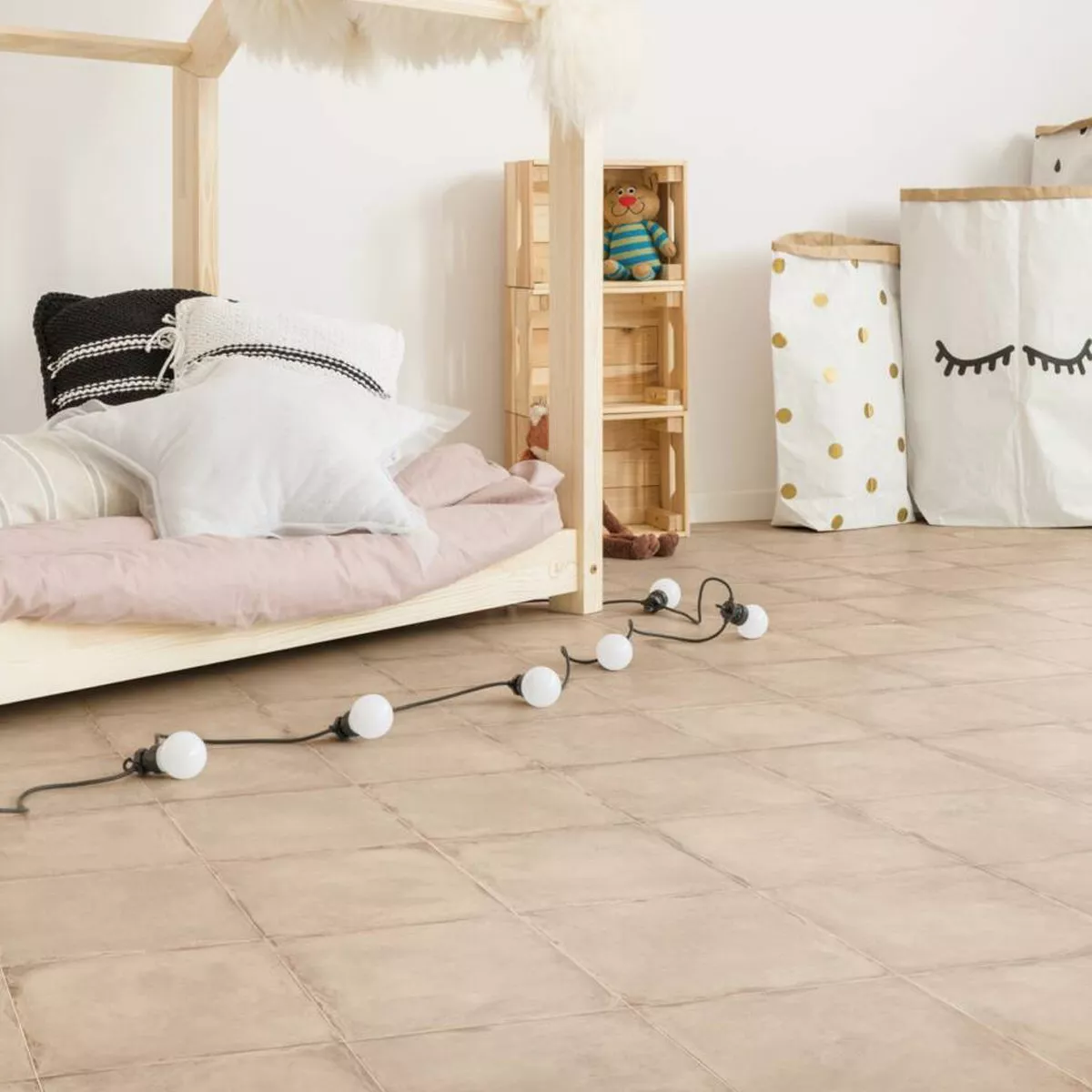 Die modernen Feinsteinzeug Bodenfliesen überzeugen nicht nur mit ihren technischen Eigenschaften, sondern auch mit ihrem Aussehen. Die matt und strukturierte Oberfläche schafft ein einladendes Ambiente in jedem Zimmer. Zudem sind die Fliesen in einer angenehmen und vielseitigen Beigetönung gehalten, die sich harmonisch in jedes Farbschema integrieren lässt.