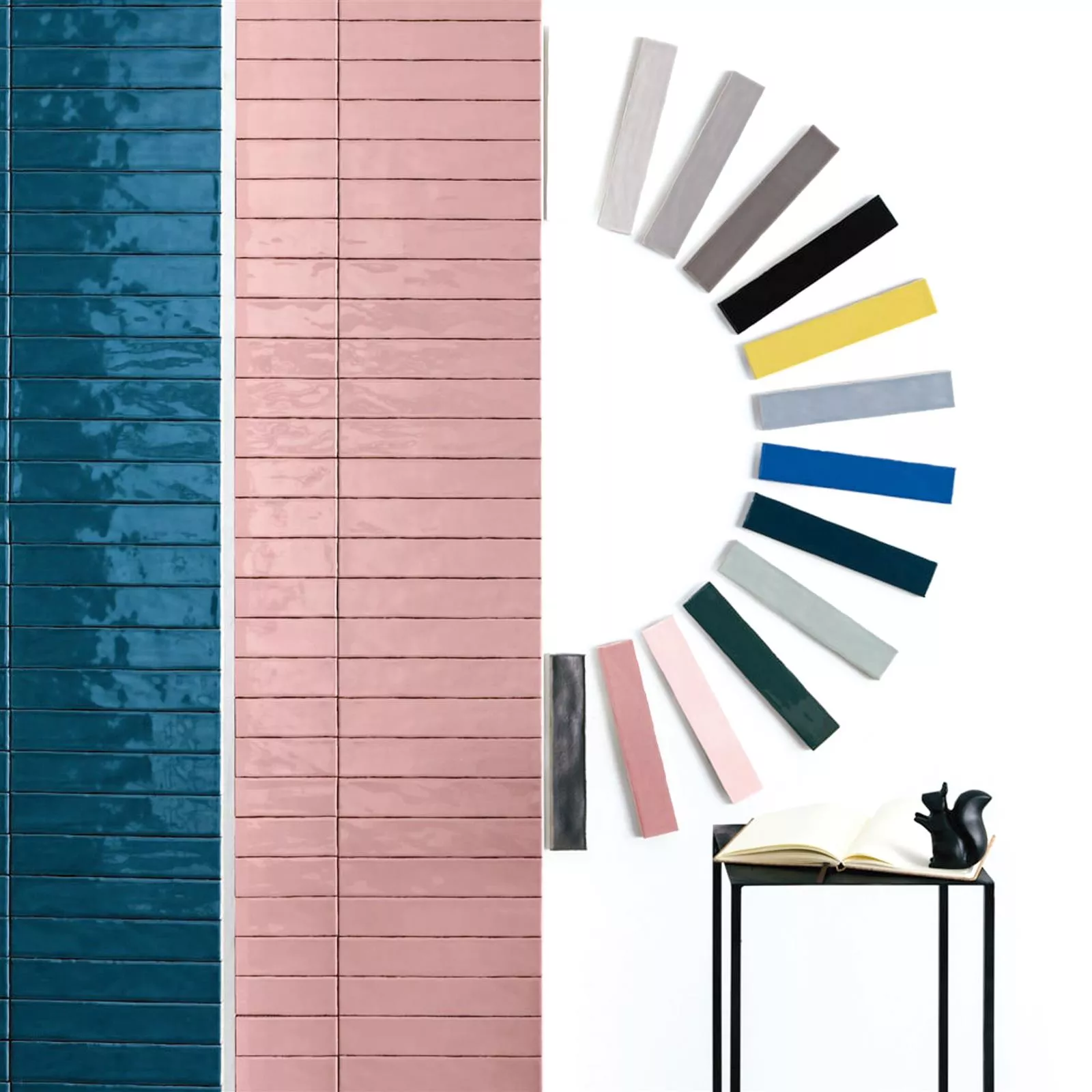 Wandfliesen Montreal in verschiedenen Farben, mit gewellter, glasierter Oberfläche aus Steingut. Glänzende Oberfläche mit Naturkante.
