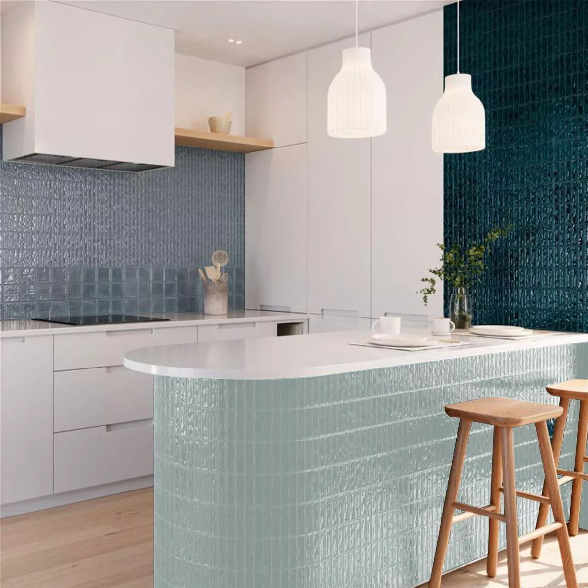 Wandfliesen Verbania Stäbchen Glänzend Gewellt Türkis 20x20cm